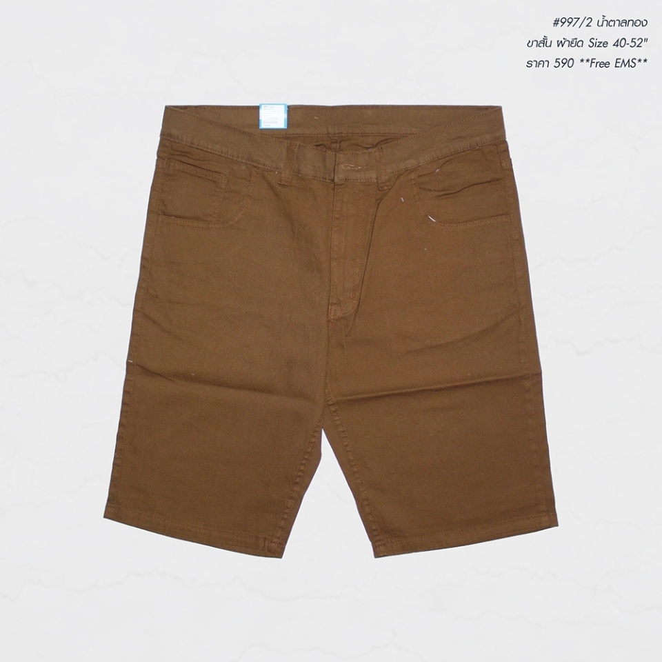 กางเกงผ้า ขาสั้นผ้ายืด3ส่วนใส่สบาย ซิบ เอว 40-58" #997/2 สีน้ำตาลทอง